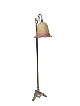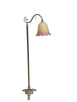 Lot 242 , An early 20th century brass standard lamp with Tiffany style mottled glass shade, height 170cm