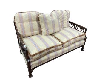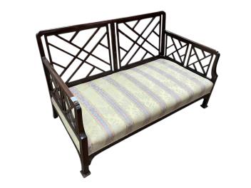 Lot 1089 , An early 20th century mahogany three piece suite comprising a sofa, width 134cm, depth 70cm, height 76cm and matching armchairs with fretwork sides