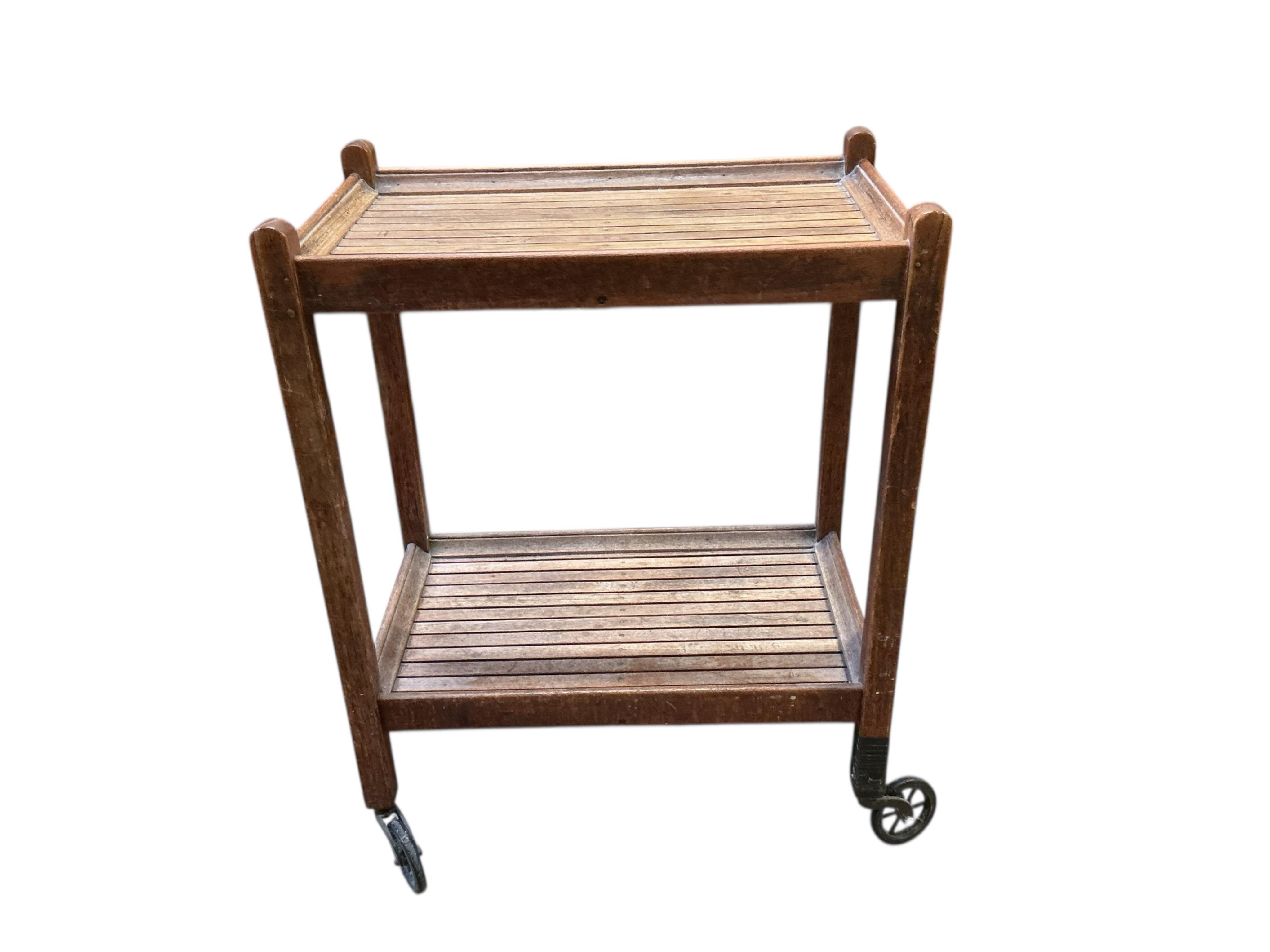 Lot 1097 , An early 20th century oak two tier trolley by Castles, London, width 55cm, depth 39cm, height 84cm