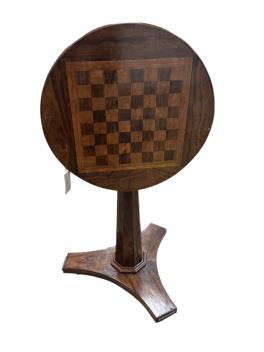 Lot 28 , An early Victorian circular rosewood games table with chess board top, diameter 45cm, height 61cm