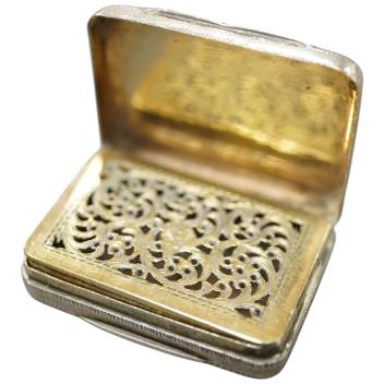 Lot 844 , An early Victorian engraved silver rectangular vinaigrette by Thomas Simpson Jr, Birmingham, 1838, 35mm.