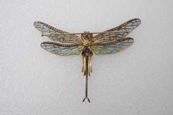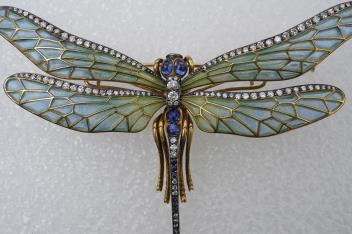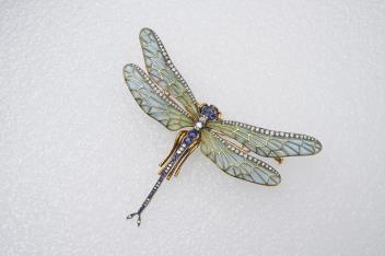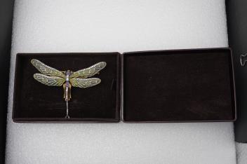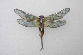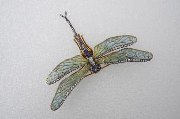 Lot 451 , An enamel, sapphire and diamond dragonfly brooch