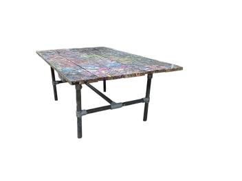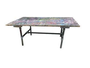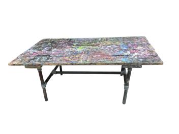 An industrial style rectangular artist's studio work table, width 195cm, depth 112cm, height 75cm