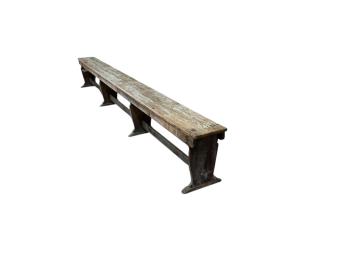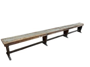 Lot 1053 , An oak school bench, from Kings College, Cambridge, width 366cm, depth 28cm, height 47cm
