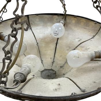 Lot 1283 , An opaque glass and brass mounted hanging ceiling shade, 52cm diameter