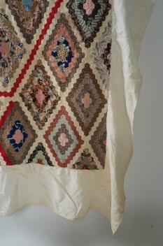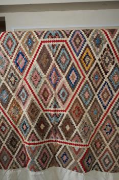 Condition - The colours are still bright and cotton strong. The patchwork backing and the cream cotton border were added later.