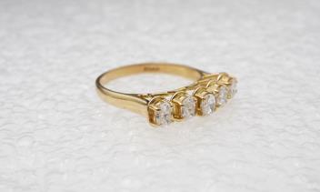 Lot 2952 , An oval diamond five-stone ring, totalling approximately 0.50 carats, mounted in 18ct gold, size M1/2, British hallmarks, gross weight approximately 3.5 grams