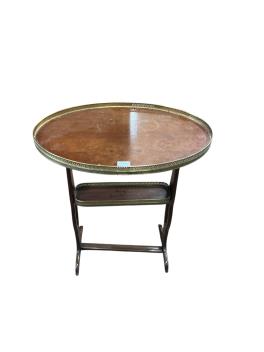 Lot 1094 , An oval mahogany occasional table of French style with brass galleried top and undertier, width 62cm, depth 41cm, height 70cm