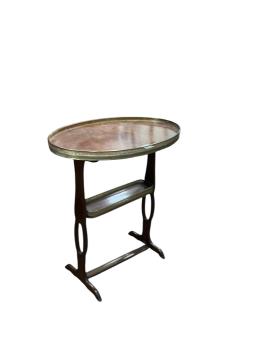 An oval mahogany occasional table of French style with brass galleried top and undertier, width 62cm, depth 41cm, height 70cm