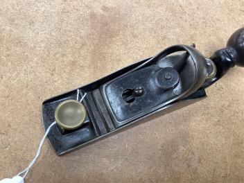 An unmarked Stanley 15 1/2 block plane with removable rear handle and adjustable throat, fitted with a Bailey’s 1 5/8” iron, the sole 16cm long