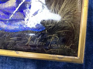 Lot 377 , Andree Ponsard (19th/20th century), 'The Holy Family with the Infant Saint John the Baptist', signed and dated 1909 lower right , enamels on copper, overall 34 x 29cm