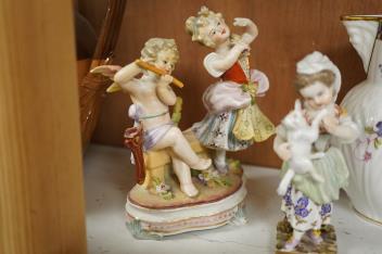 Assorted porcelain to include a Moorcroft oval dish - 23cm long, a collection of Royal Crown Derby teaware and a Robin paper weight, two Herend dishes etc,