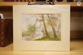 Lot 765 , Attributed to Edwin Earp (1851-1945), Mountainous riverscape with boats and cattle, unsigned, watercolour, 17 x 53cm