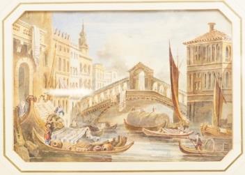 Lot 717 , Attributed to Samuel Prout (1783-1852), 'Bridge of Rialto', unsigned, watercolour, 14 x 20cm