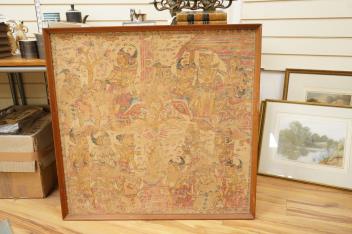 Lot 755 , Balinese school, deities and figures, watercolour/gouache on fabric, together with a portrait, oil on canvas, largest 82 x 84cm