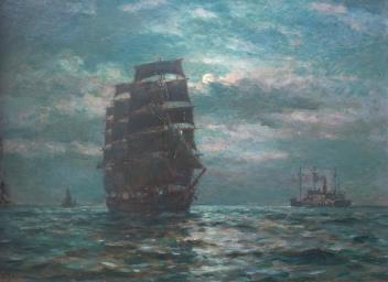 Lot 229 , Bernard Finegan Gribble, 1872-1962, Moonlit shipping scene