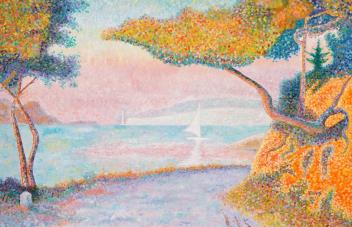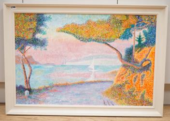 Lot 1742 , Boivin, Continental coastal view with lighthouse, signed, Pointillist style oil on canvas, 49 x 74cm