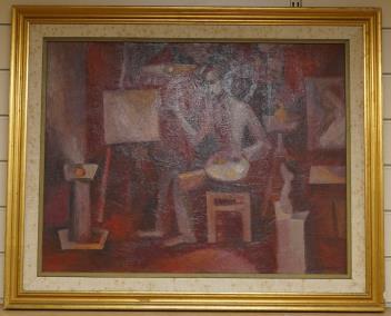 Boris Geldman (b.1957), artist in the studio, signed, dated ‘92 verso, oil on canvas, 49 x 64cm