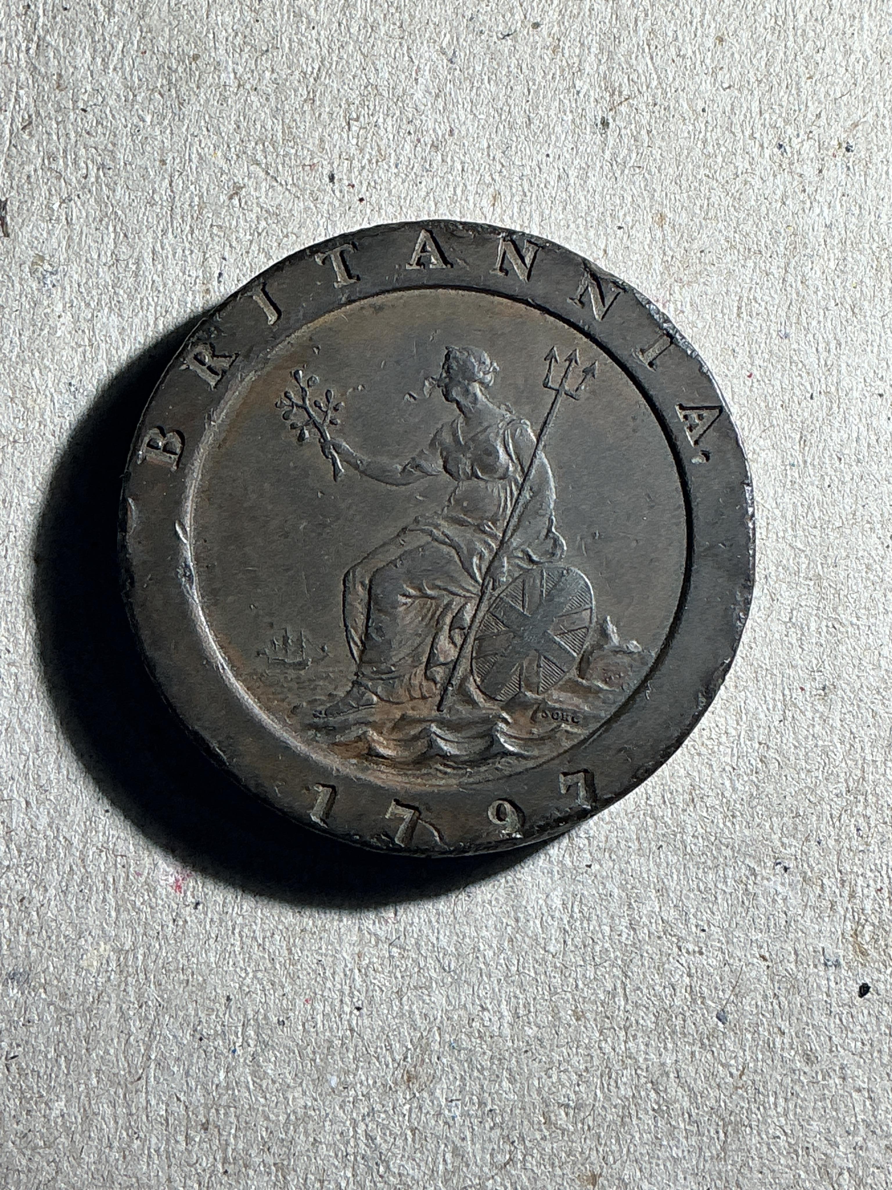 British coins, George III, copper cartwheel twopence, Soho mint, 1797, VF
