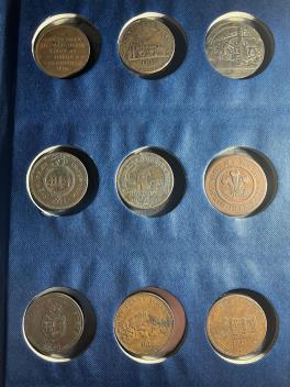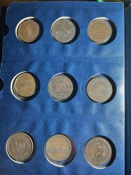 a collection of 36, including Cheltenham, Bristol and South Wales, Dudley & Birmingham, Staffordshire, Hull Ironworks, Phoenix ironworks Glasgow, Worcester, Dublin, together with an HMS Foudroyant commemorative medal, and the Gigantic Wheel, Earls Court, 1899 (36), in an album