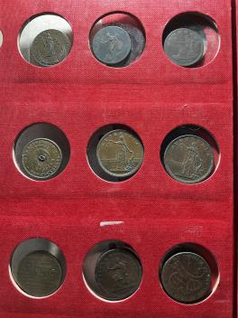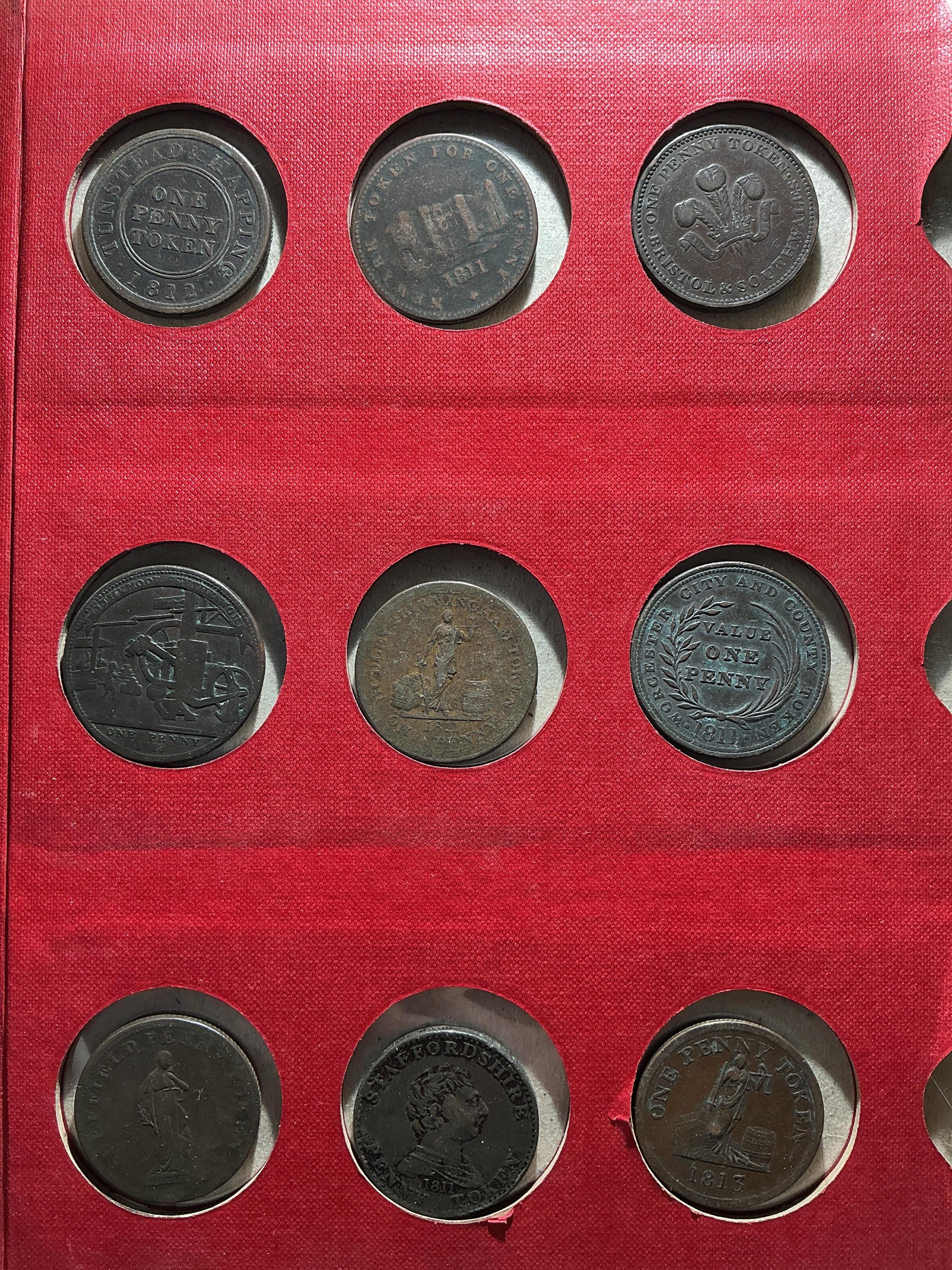 Lot 2157 , British copper tokens, early 19th century, Comprising ten, one penny tokens, a Norwich twopence token and a Birmingham threepence token, Australia copper tokens; James Campbell general stores Morpeth and Ryedale & Co. ir