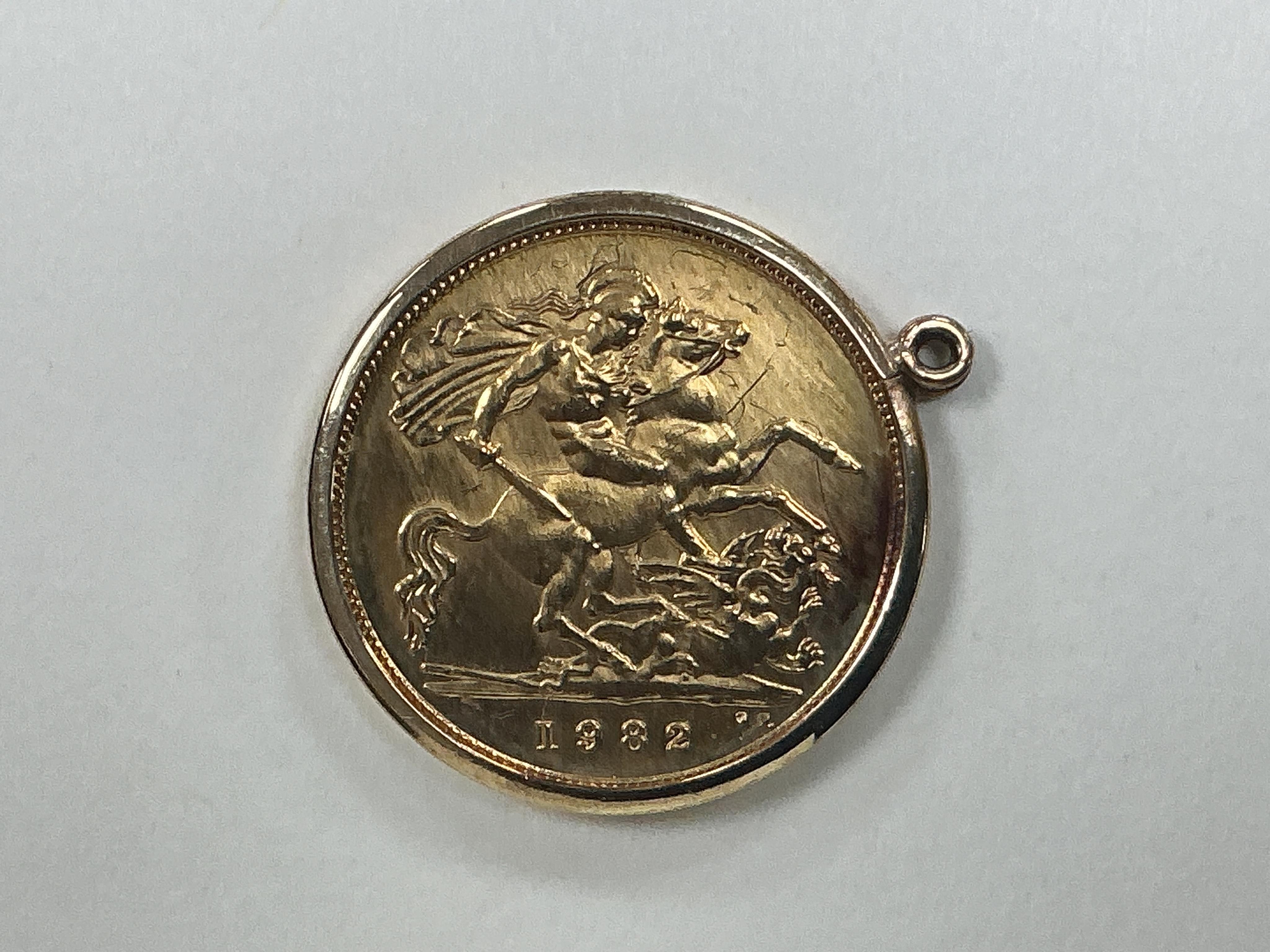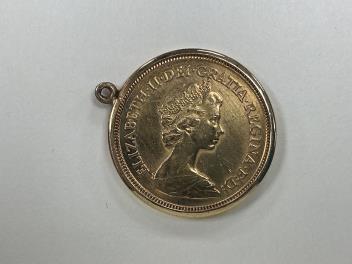 Lot 2102 , British gold coin, Elizabeth II, gold half sovereign, 1982, later 9ct. gold mount