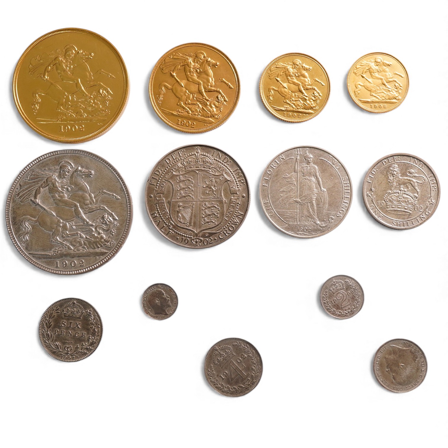 British gold coin set, Edward VII, 1902 matte proof thirteen coin set,