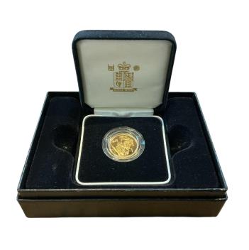 British gold coins, Elizabeth II, Royal Mint UK gold proof sovereign, 2001, in case of issue with certificate