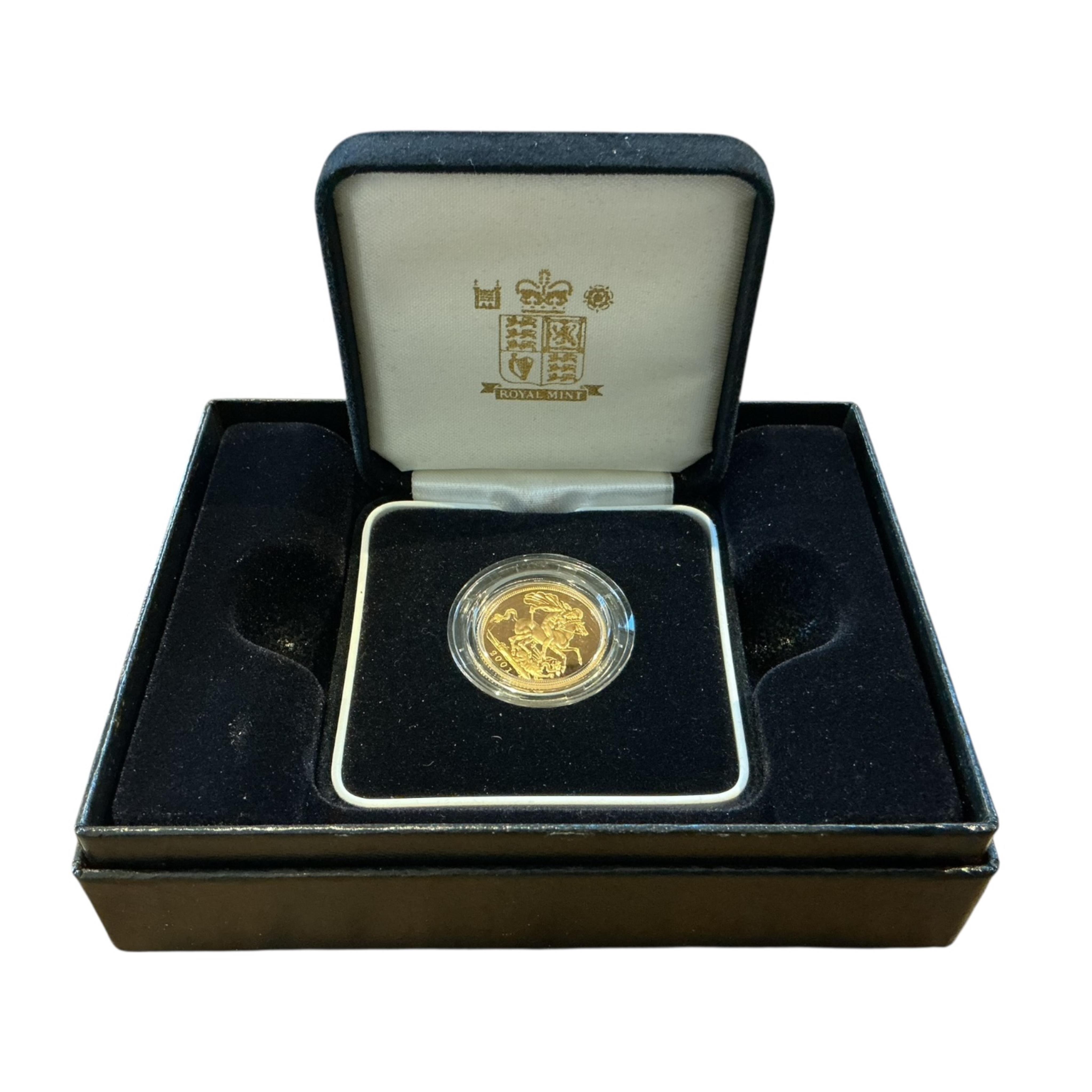 Lot 2133 , British gold coins, Elizabeth II, Royal Mint UK gold proof sovereign, 2001, in case of issue with certificate