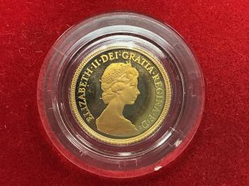 Lot 2117 , British gold coins, Elizabeth II, proof gold half sovereign, 1980, in case of issue with certificate