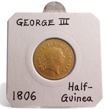 British gold coins, George III, gold half guinea, 1806, seventh bust, S 3737, VF or better