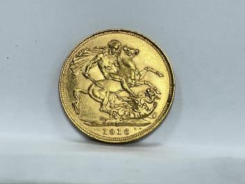 Lot 2116 , British gold coins, George V, gold sovereign, 1916 S, good VF