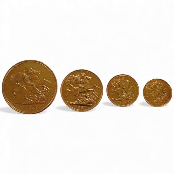 Lot 2112 , British gold coins, George VI, proof gold four coin set, 1937, comprising gold five pounds, two pounds, sovereign and half sovereign, housed in capsules
