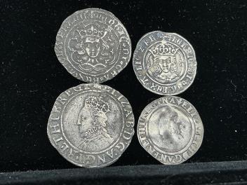 Lot 2079 , British hammer silver coins, Henry VI, groat, mm. cross patteé, probably S. 2082, 3.6g, Henry VII, groat, mm. cross crosslet, 1504-5, probably S. 2201, 3g, Elizabeth I, shilling , fifth issue, mm. tun, 1591-5, 6g and six