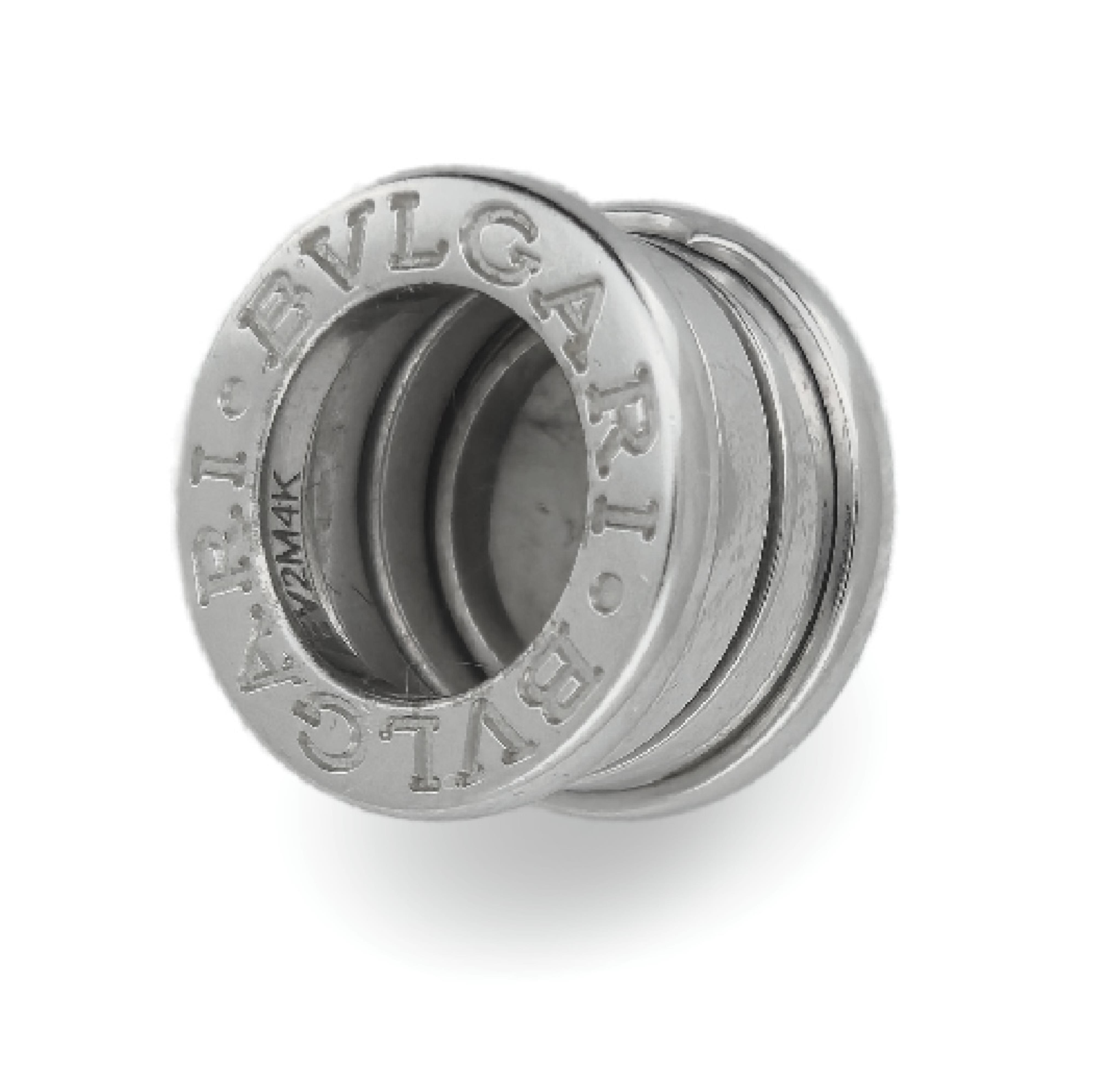 Bulgari, a 'B-Zero' pendant, designed as a partially sprung tube in white gold, diameter 1.5cm, signed BVLGARI twice to each end, Italian maker's marks, stamped Au750, numbered EV2M4K, gross weight approximately 7 grams