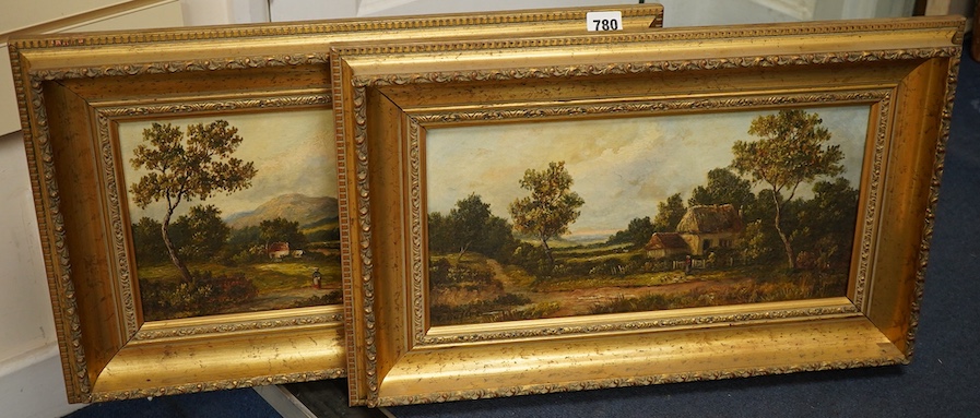 C. Butler (late 19th century), pastoral landscapes, each signed, pair of oils on canvas, 19 x 39cm