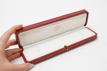 Cartier, a bracelet case, white interior, stamped Cartier Paris London New York, base stamped Cartier Made in France, length 23cm