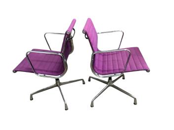 Lot 1144 , Charles Eames for Vitra, a pair of chrome swivel desk chairs on four prong bases, width 57cm, depth 50cm, height 82cm