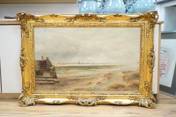 Lot 760 , Charles J. Burt (1823-1902), 'The Lookout, Barmouth', signed and dated 1891, oil on canvas, 59 x 97cm, ornate gilt frame