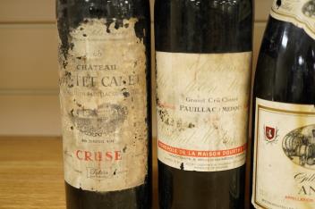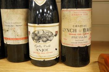 Chateau Lynch Bages, 1964, two bottles of Bordeaux, 1959 and 1960, and a bottle of Anjou, Burgundy (4)