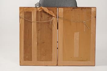 One image has some water staining to the edges of silk, both with some occasional staining all over, otherwise in reasonable condition.