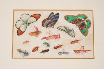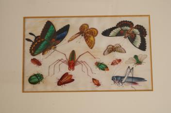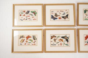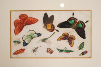 Lot 247 , Chinese School , (mid 19th century), Butterfly and insect studies, A set of eight watercolours on pith paper, each image 16 x 26cm, staining