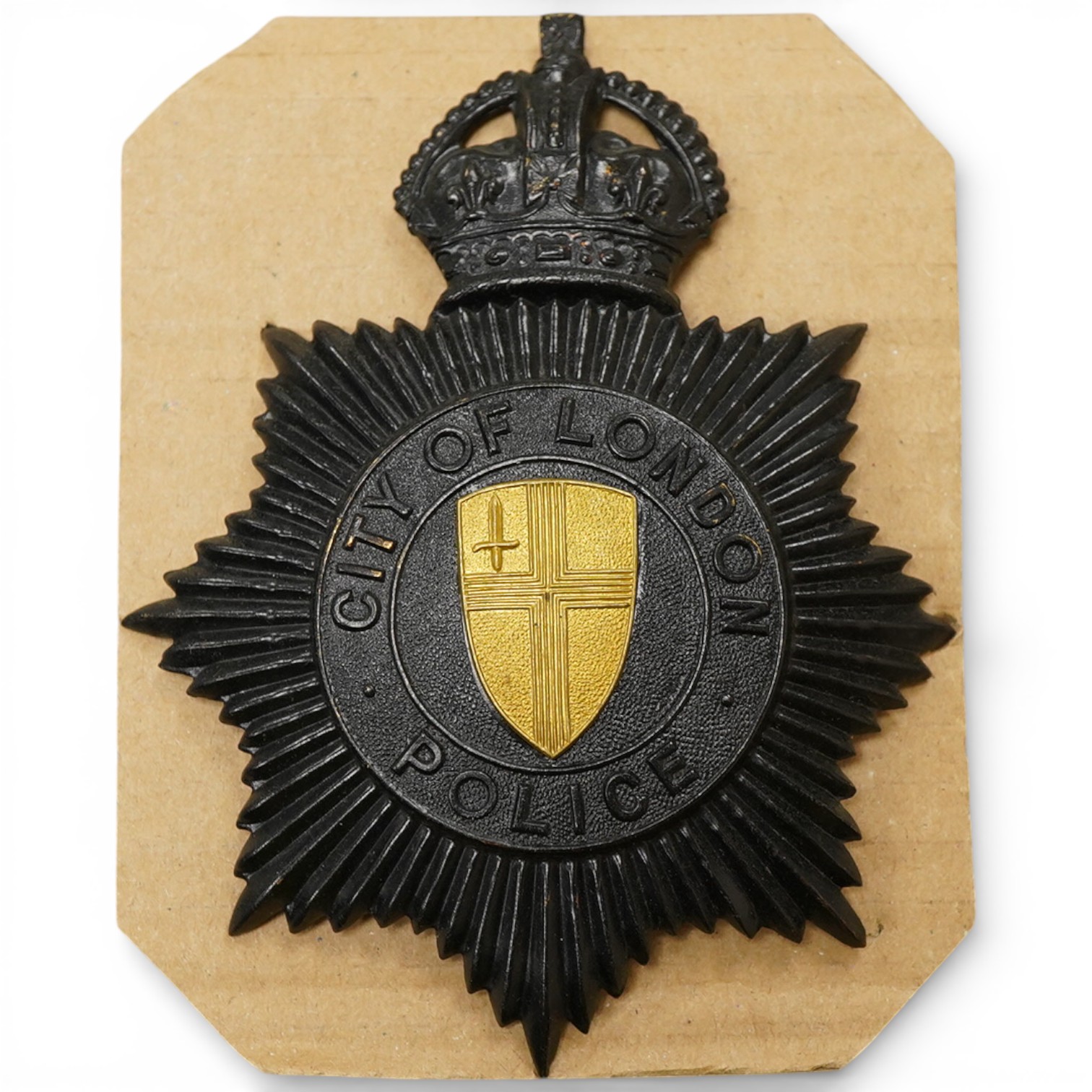 City of London Police Helmet Plate Kings Crown black star, brass coat of arms centre (never issued).