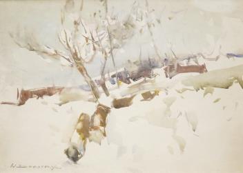 Lot 742 , Contemporary School, Windswept landscape at night, monogrammed A. C., oil on canvas, together with a similar example by a different hand, 24 x 33cm