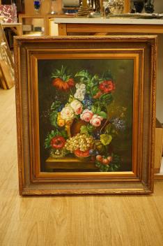 Lot 1754 , Contemporary school, in the 17th century style, still life of fruit and flowers on a ledge, oil on canvas, 59 x 49cm