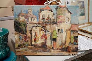 Lot 1741 , Theodorus van Oorschot (Dutch) 1910-1989, Street scene with figure beneath an archway, indistinctly signed, oil on canvas, unframed, 40 x 50cm