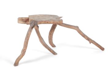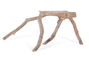 a four-piece rustic small table on four naturalistic legs, 37cm high x 93cm wide