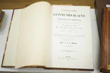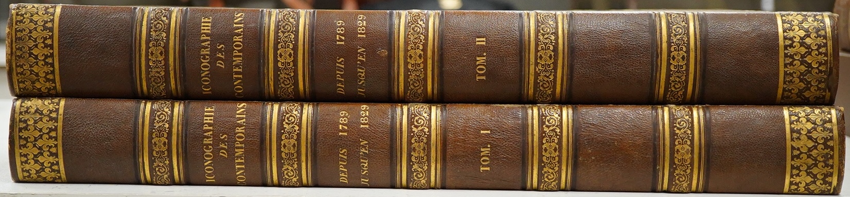 Lot 1326 , Delpech, Francois-Seraphin - Iconographie Contemporains ... 2 vols. 205 lithographed portrait plates, with facsimile autograph letter (etc.) by the subject on adjacent leaf; later 19th cent. half morocco and marbled boar