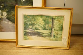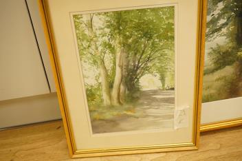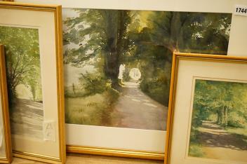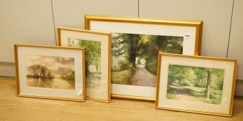 Lot 1744 , Derrick G. Holt (20th. C), A country lane, signed, watercolour, and three others by the same hand, largest 31 x 46cm