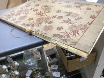 ° Dillon, F Drawings by Japanese Artists. Reproduced and Coloured in fac-simile by the Autotype Process. With Letter Press Descriptions. illus. 9 (of 15) colour plates. title+16pp. + 9 (of 15) descriptive text leaves. Original decorative cloth portfolio boards with gilt lettering and floral motifs. 1880